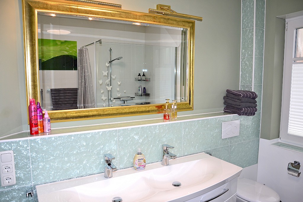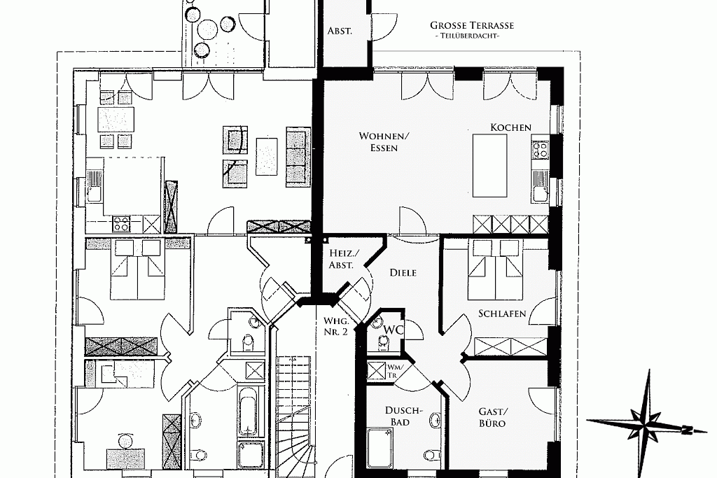 - Waschmaschinen- und Trockneranschluss im Badbereich vorgesehen (optisch gelungen abgetrennt)