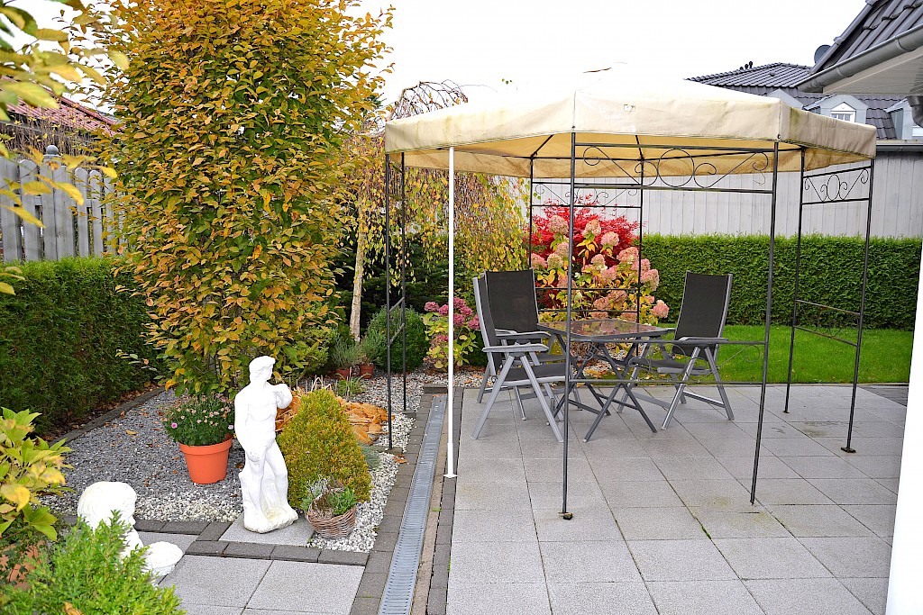 - geschützt liegender Gartenbereich ist komplett eingezäunt bzw. eingegrünt und für Fremde nicht einsehbar