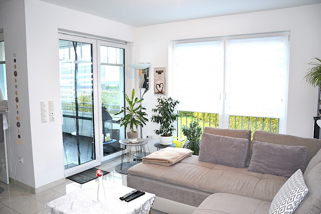 Zur Vermietung steht die charmante Hochparterre- Wohnung Nr. 2 im Haus 44. Die erstklassige Wohnung verfügt über eine optimale Südwestausrichtung und beeindruckt durch ausgesuchte Ausstattungsmerkmale, höchste Qualität, eine gelungene Raumgliederung sowie eine Bauausführung mit viel Liebe zum Detail. Selbstverständliche Ausstattungsmerkmale der Wohnanlage sind elektrische Außenrollläden, behagliche Fußbodenheizung mit Einzelraumsteuerung, aparte Badausstattung inkl. Badradio sowie modernste Materialienauswahl. Die 2- Zimmer- Eigentumswohnung Nr. 2 in der Hochparterre (Haus 44) verfügt über eine Wohnfläche von 55 qm. Die moderne Wohnung verzaubert durch eine ausgezeichnete Raumaufteilung sowie optimale Lichtverhältnisse. Die Neubau- Wohnung unterteilt sich in einen lichtdurchfluten Wohn- und Essbereich mit angrenzendem offen gestaltetem Kochbereich (die Einbauküche kann vom jetzigen Mieter übernommen werden), eine geschützt liegende Südwestloggia mit wintergartenähnlicher Faltverglasung, ein geräumiges Schlafzimmer, ein Wohlfühl- Badbereich mit begehbarer Dusche, Abstellraum sowie Flurbereich. Zur Wohnung gehören weiterhin ein großzügiger Kellerraum sowie der Tiefgaragen- Stellplatz Nr. 2.