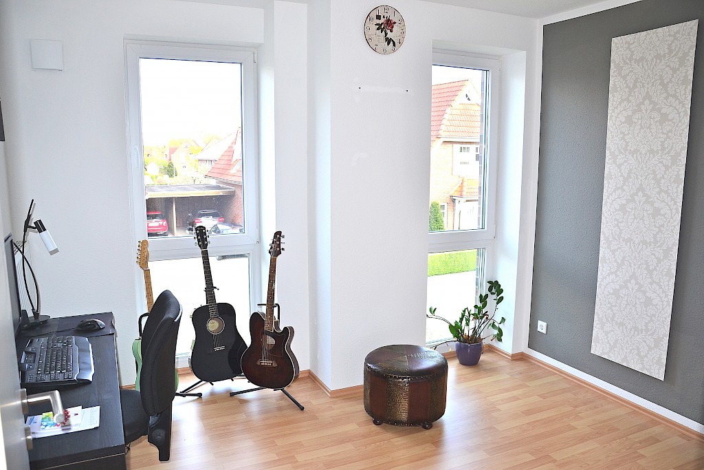 Die Wohnung im 1. Obergeschoss ist bequem über eine Fahrstuhlanlage zu erreichen. Die erstklassige Mietwohnung unterteilt sich in einen großzügigen Wohn- und Essbereich mit Zugang zum sonnigen Südbalkon, einen offen gestalteten Kochbereich inkl. neuer Einbauküche, ein geräumiges Schlafzimmer, einen praktikablen Abstellraum/ HWR, ein helles Büro/ Gästezimmer, ein modernes Duschbad/ WC sowie eine Eingangsdiele. Die Wohnung (ausgenommen Kochbereich, Bad und HWR) wurde mit einem hochwertigen Laminat-Fußboden versehen. Die Fußböden im Duschbad, im HWR sowie im Kochbereich wurden mit einem ausgewählten Fliesenbelag gestaltet. Dieses Mietobjekt verfügt insgesamt über eine Wohnfläche von ca. 83 m² und beeindruckt insbesondere durch ihre beeindruckende Raumaufteilung, die optimalen Lichtverhältnisse sowie die brillanten Ausstattung. Weiterhin bietet dieses Mietangebot einen direkt zugeordneten PKW- Stellplatz auf dem Hausgrundstück.
