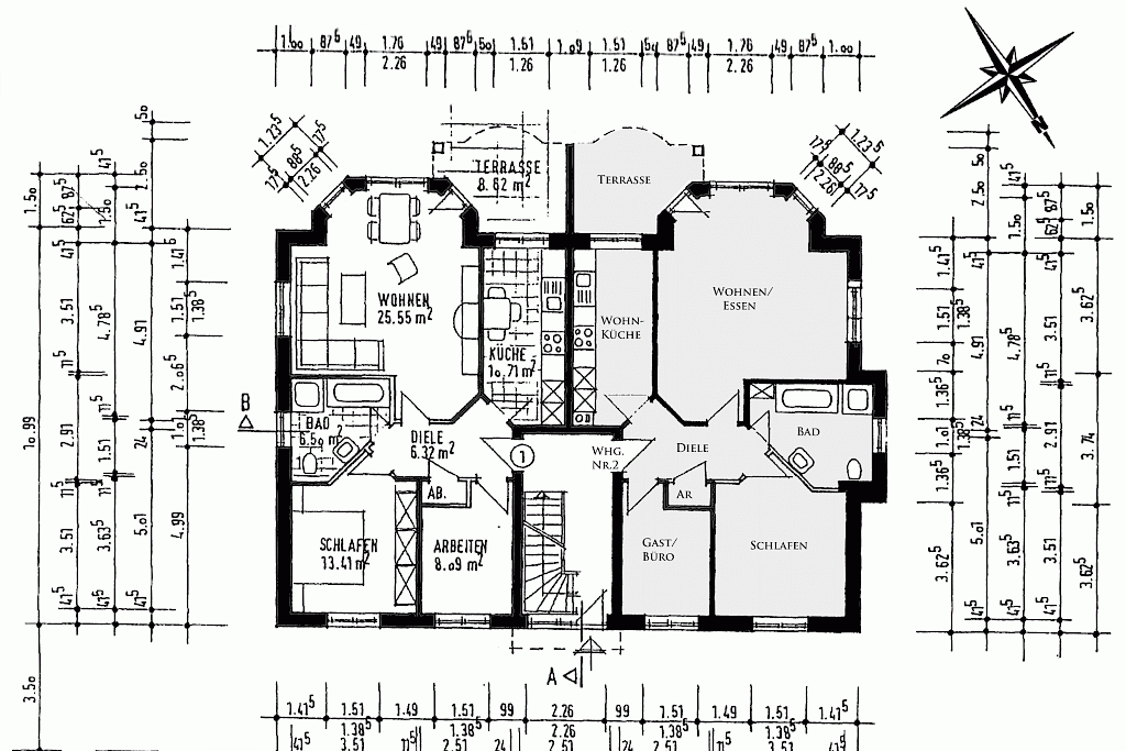 - gemeinschaftliche Gas- Zentralheizung mit Warmwasserspeicher mit außenthermostatischer Regelung