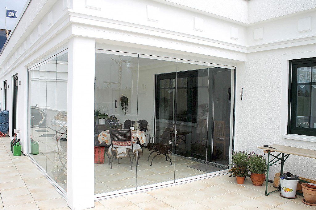 - ein Teilbereich der Dachterrasse ist mit einer rahmenlosen Faltverglasung „sog. Sommergarten“ ausgestattet, somit entsteht auf Wunsch ein wintergartenähnlicher Platz zum Wohlfühlen und Entspannen.