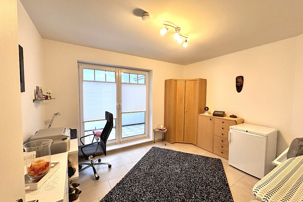 Die Penthouse- Wohnung Nr. C5 erfüllt auch besonders hohe Ansprüche und verwöhnt Ihren Bewohner mit einem einzigartigen Wohngefühl sowie mit einer grandiosen Dachterrasse in optimaler Südausrichtung. Dieses Domizil verfügt über ein luxuriöses Wohn- und Esszimmer mit angrenzender Küche (Einbauküche kann vom jetzigen Mieter übernommen werden), elegantes Schlafzimmer mit Wannenbad en suite, zwei weitere Schlaf- bzw. Arbeitszimmer, ein weiteres Duschbad/WC, großer Hauswirtschaftsraum, Abstellraum sowie die imposante Eingangsdiele mit Garderobenbereich. Vom Wohnbereich sowie vom Arbeits- und Gästezimmer gelangen Sie auf die großzügige Dachterrasse mit teilüberdachtem wintergartenähnlichen Bereich in idealer Sonnenausrichtung. Selbstverständliche Auszeichnungen dieses Wohndomizils sind u. a. Liftanlage in jedem Haus, modernste Heiztechnik, aparte Ausstattungsmerkmale sowie höchste Qualität. Der Hochkellerbereich verfügt über einen hellen separaten Abstellraum für die Wohnung. Unmittelbar vor dem Hauseingang wird dieses attraktive Mietangebot durch zwei Garagen abgerundet. Zur gemeinschaftlichen Nutzung steht ein großzügiges Fahrradhaus mit elektrischem Rolltor im Außenbereich zur Verfügung.