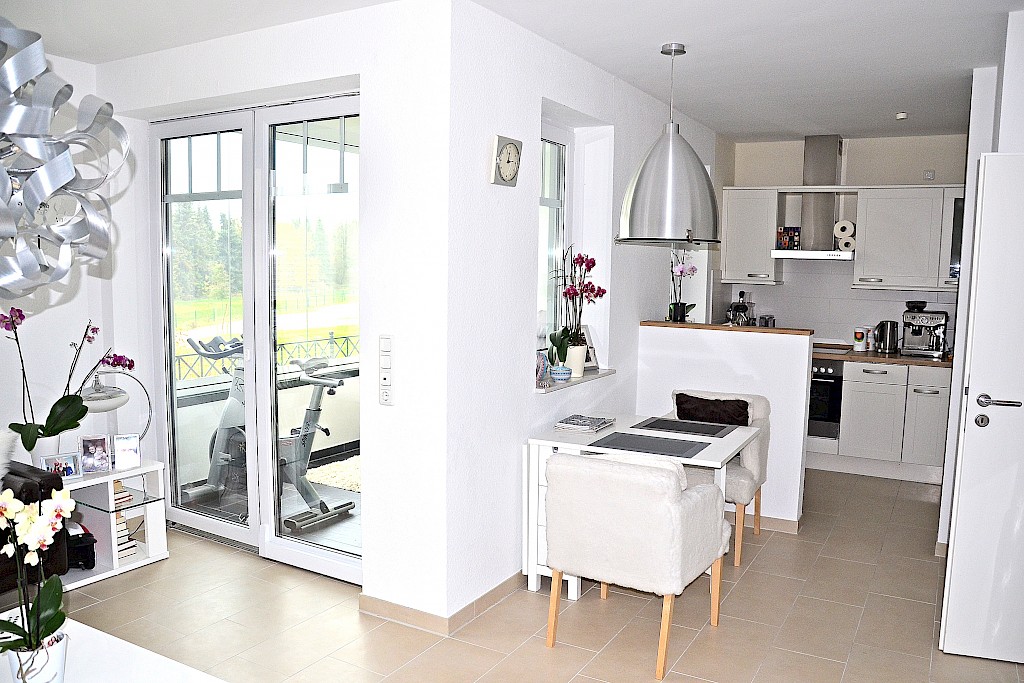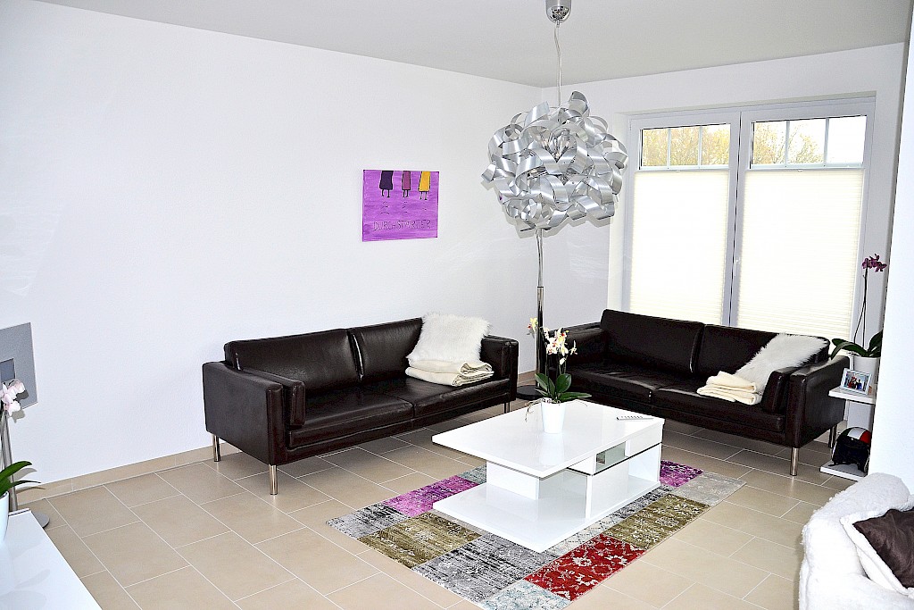 • die gesamte Wohnung ist mit einem einheitlichen hellen Fliesenboden mit stilvollen Bodenfliesen in modernem Rechteckformat 30 x 60 ausgestattet